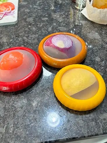 Ils sont vraiment super, faciles à utiliser, à nettoyer et gardent tout frais. Jusqu’à présent, je les ai utilisés pour des oignons, des citrons et des avocats, et tout est resté frais.