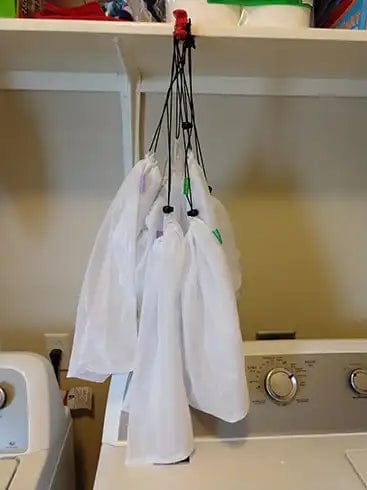J’ai ces sacs depuis un moment et ils sont faciles à nettoyer. Je les mets juste dans la machine à laver … le lave-vaisselle serait sûrement mieux, mais je les mets dans des sacs de lavage pour qu’ils ne s’emmêlent pas trop. Le séchage à l’air est rapide, ce que j’adore . Mes fruits et légumes ne se gâtent pas aussi vite, du moins pour moi, je ne peux pas garantir que ce sera pareil pour tout le monde. Ce que j’aime surtout, c’est de ne plus utiliser de plastique
